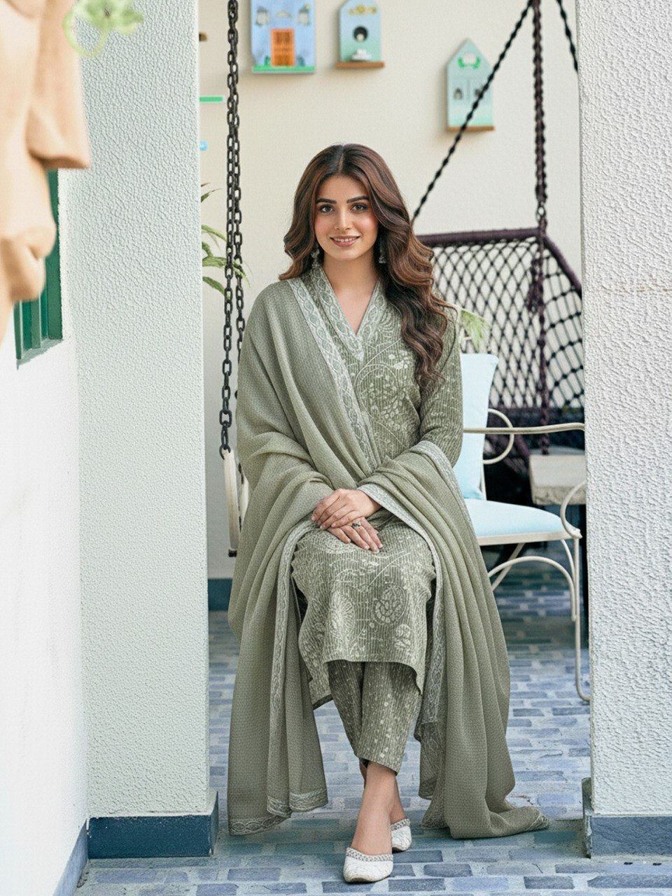 Crafted from soft and breathable rayon fabric, this women’s sage green ethnic printed kurta set brings together understated elegance and all-day comfort. The beautifully printed kurta features a graceful silhouette that drapes effortlessly, while the coordinated dupatta adds a refined ethnic touch. Lightweight and skin-friendly, this set is perfect for festive occasions, casual outings, office wear, or relaxed everyday ethnic styling. Pair it with minimal jewellery and flats for a calm, sophisticated look.