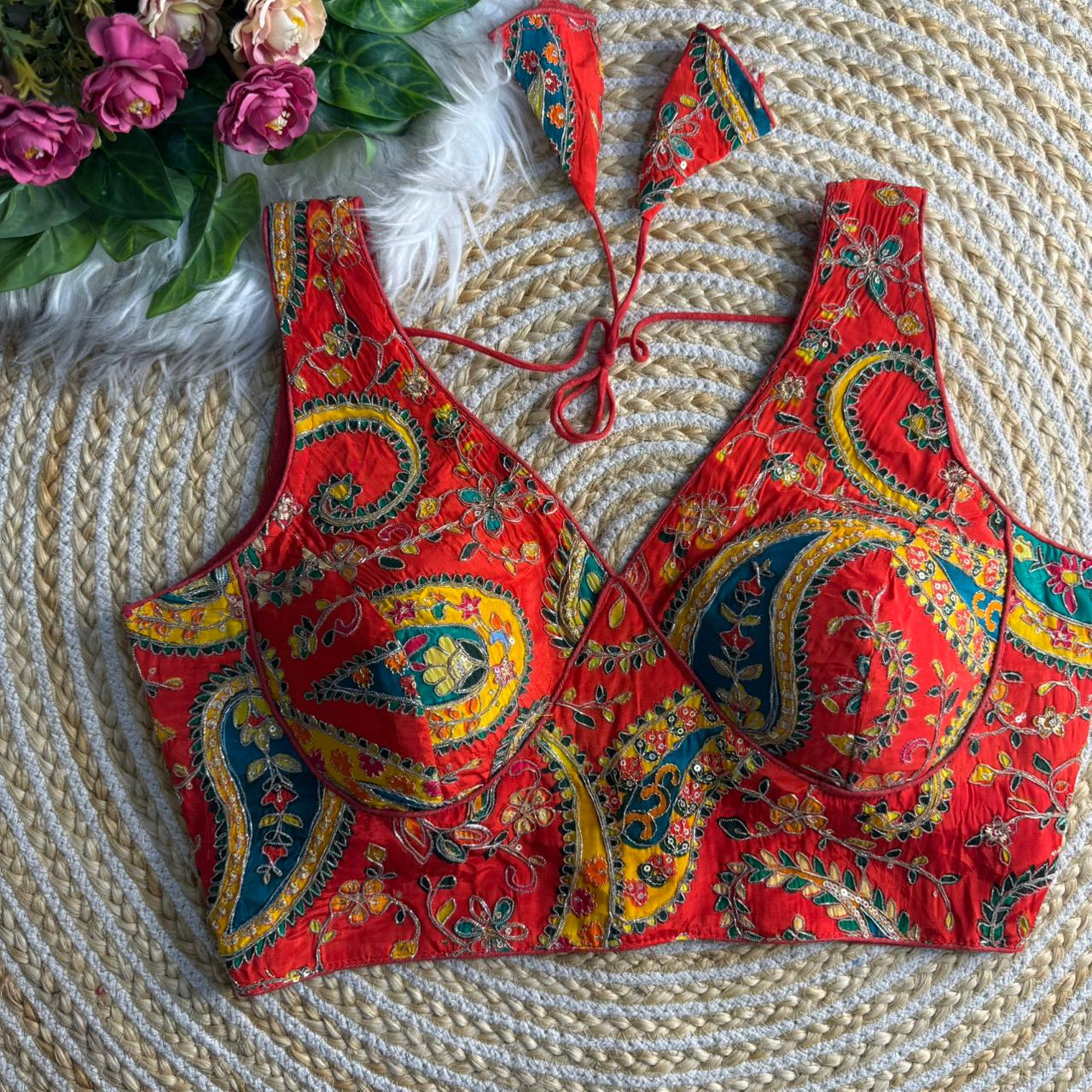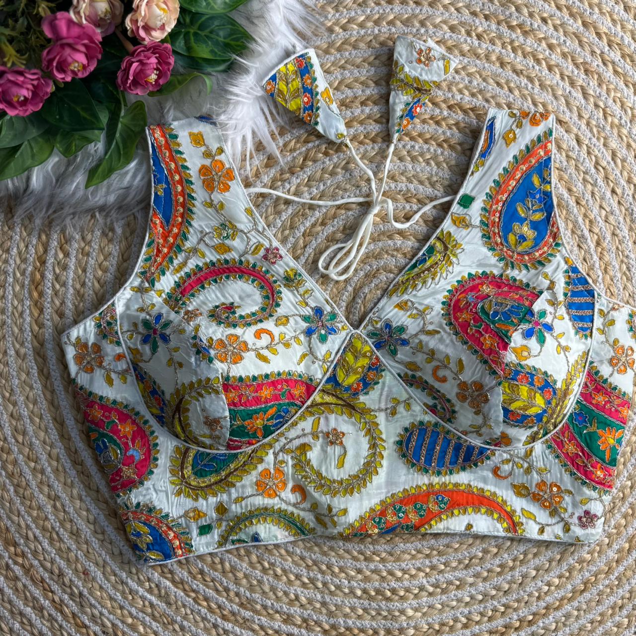 Intricately designed with detailed embroidery placement work, this blouse delivers a couture-inspired finish β perfect for weddings, festive occasions, cocktail sarees, and designer drapes.